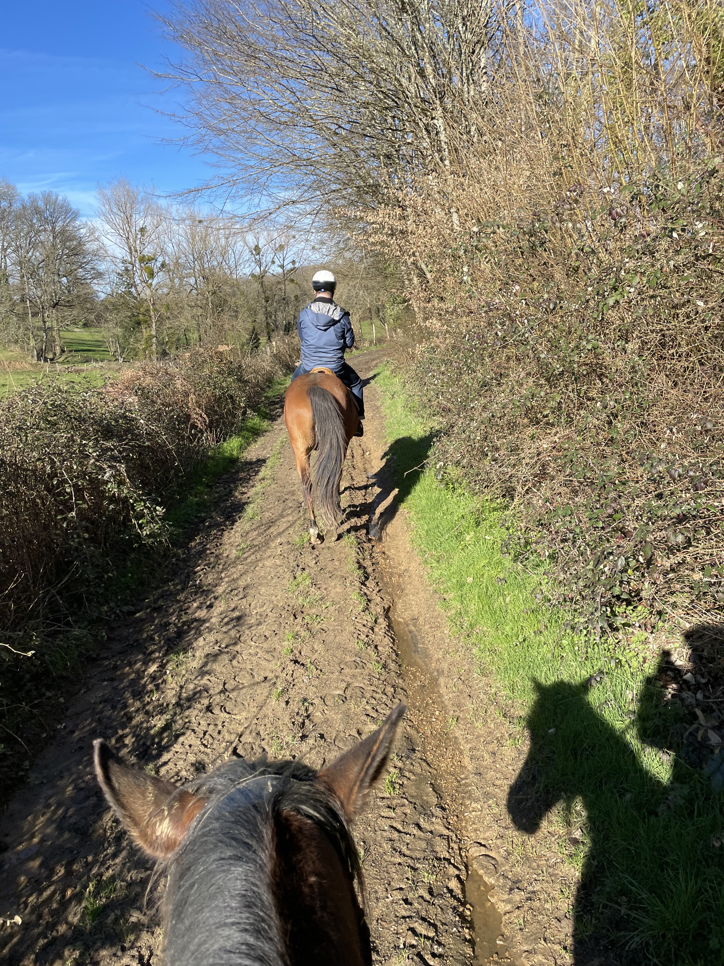 Nous avons fait 2 jours de randonnée en itinérance avec Claire, au milieu d'un paysage vallonné, boisé et verdoyant. Nous nous sommes sentis seuls au monde. Les chevaux étaient parfaits aux trois allures, et les galops sur les chemins et dans les sous-bois étaient grisants.